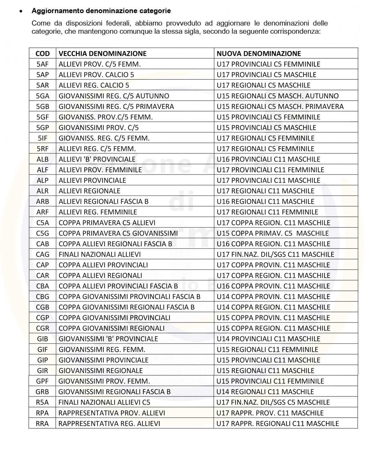 Dalla stagione 2020-2021 sono cambiati i nomi delle categorie, nella tabella sottostante trovate le variazioni